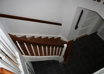Buet gelender tilpasset trappens form.